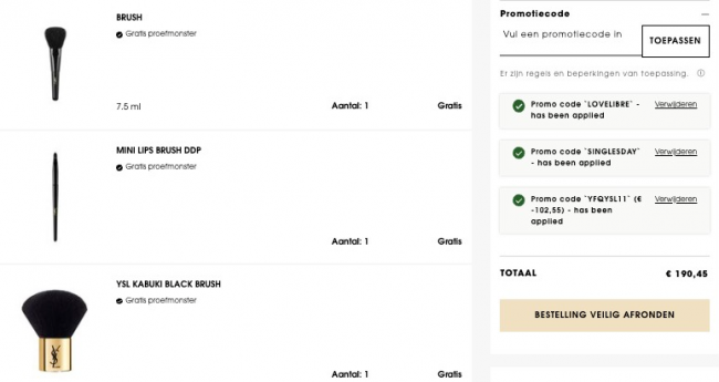 👉 独家满70€送3支化妆刷套组!赠礼码:YFQYSL11